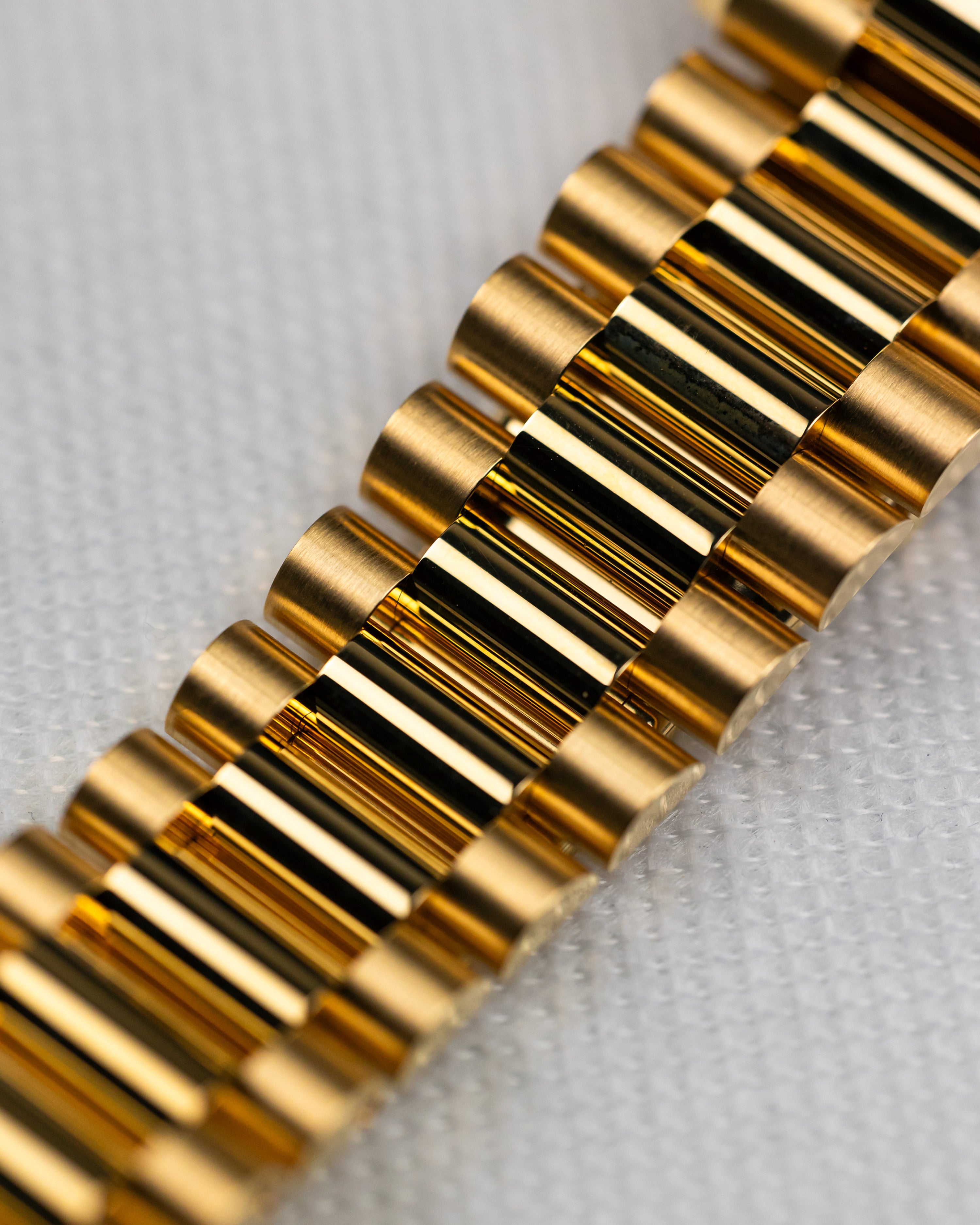 The perfect his and hers watch sized at 36mm. Presented with the champagne dial with diamond hour markers matching the iconic president bracelet in yellow gold.