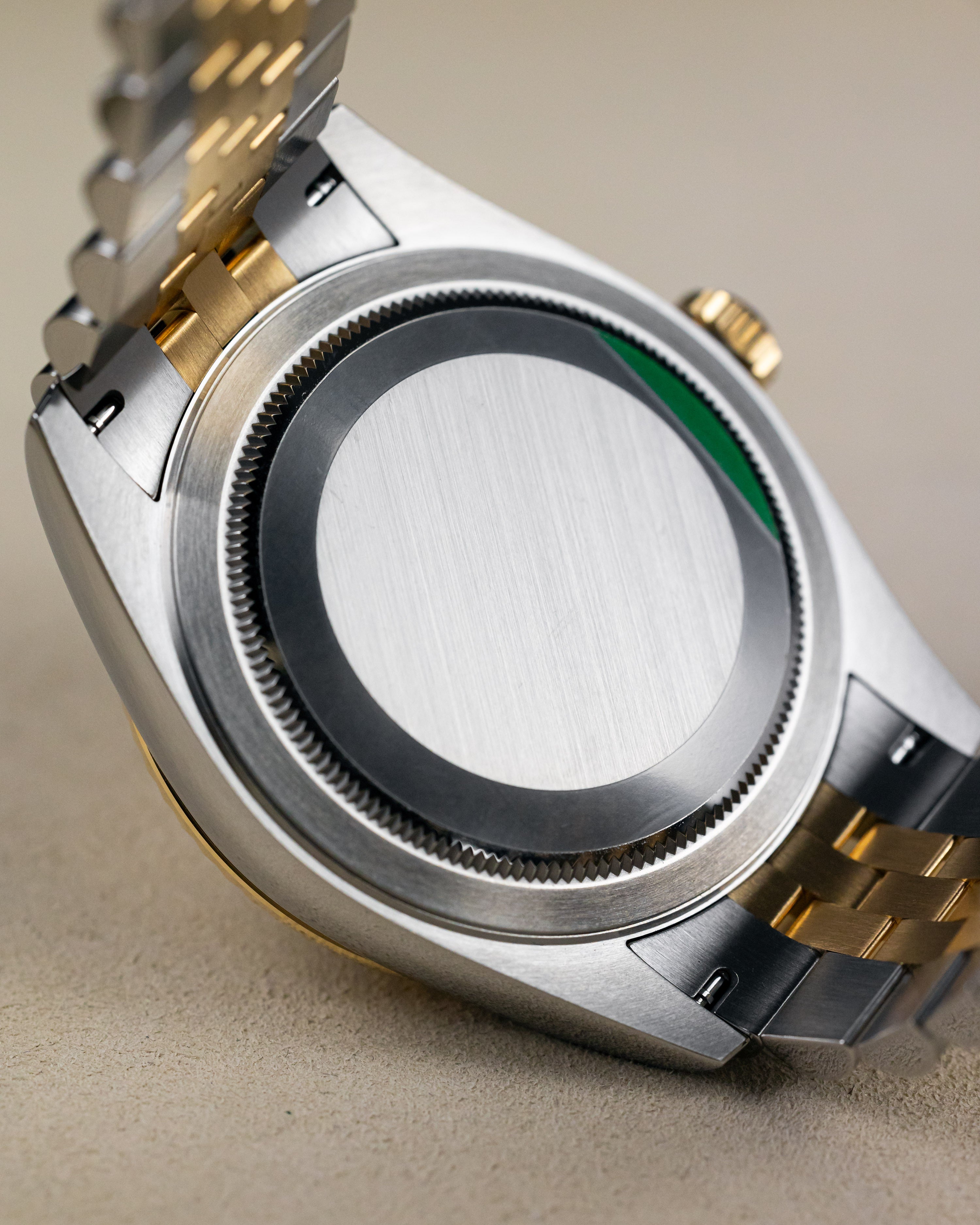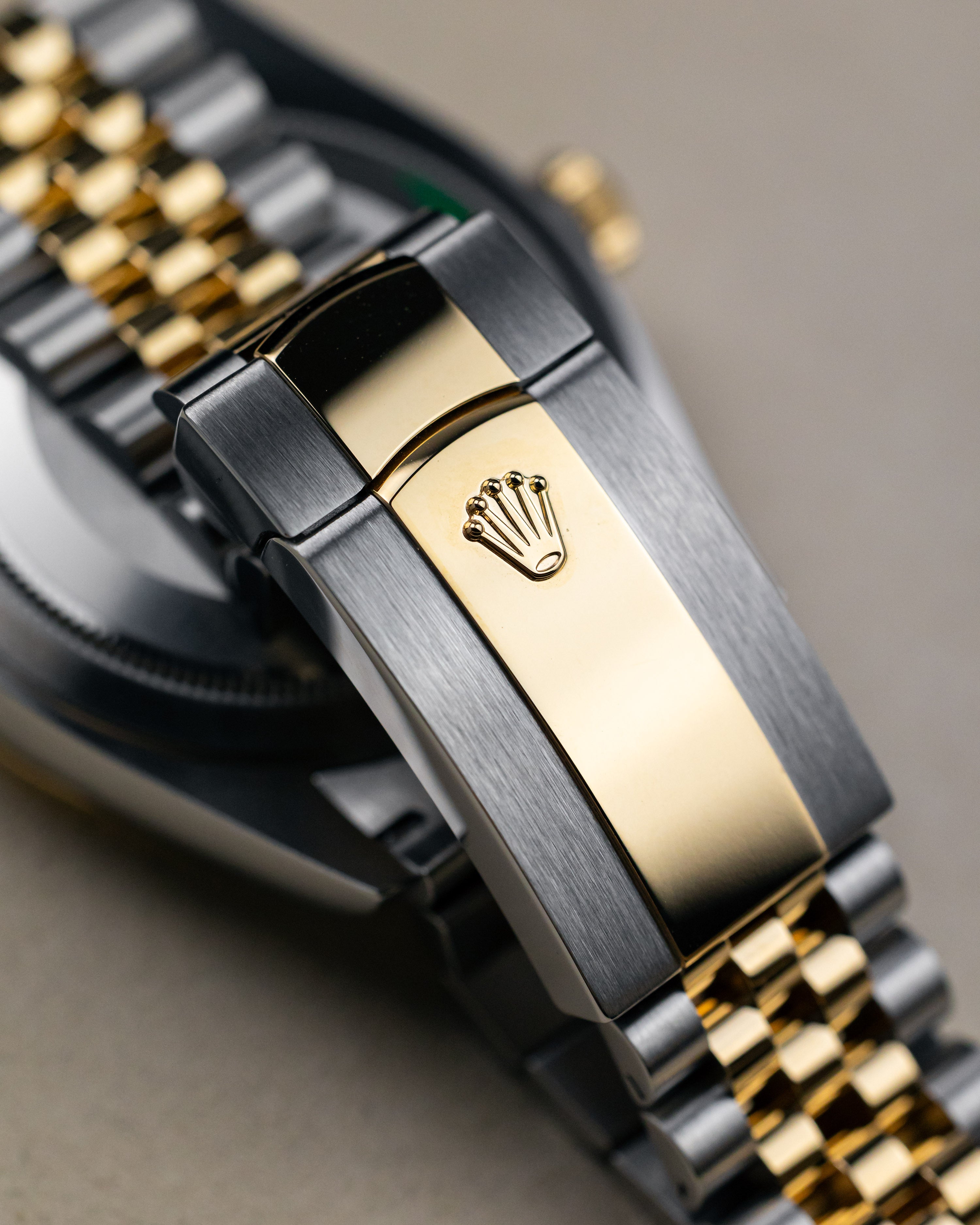 Featured with the Champagne dial matching the yellow gold two-tone jubilee bracelet.